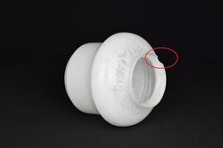 Klosz z niebieskimi paskami i z uchwytem, używany, jeden lekko uszkodzony (na zdjęciu w czerwonym okręgu).